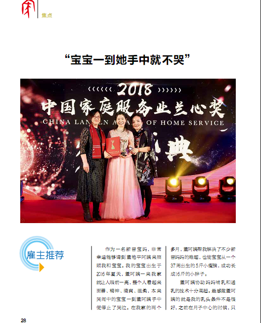 1、 兰心奖-2018年度最佳阿姨(20名)