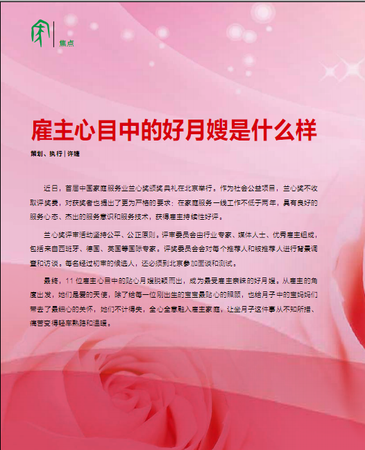(首届兰心奖获得者登上《家庭服务》杂志)
